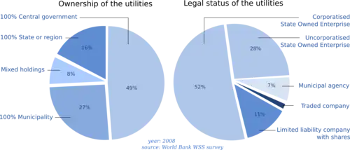 In the last two decades, the management of urban water supply and sanitation has been increasingly put in hands of newly created utilities. In some cases these water supply and sanitation utilities also supply electricity. The majority of these utilities are corporatized, meaning that they emulate a private company in terms of productivity and financial independence. Nevertheless, they widely differ in legal status and ownership structure.