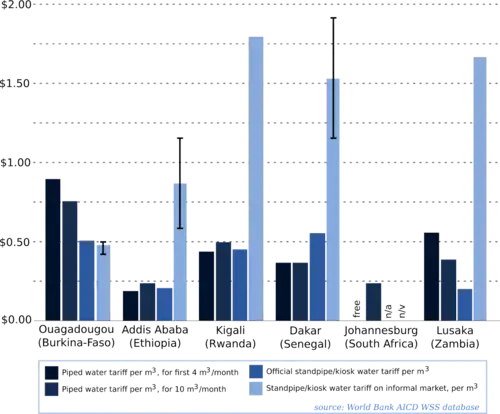 - ^ Africa Infrastructure Country Diagnostic (AICD) (2009). Provision of water to the poor in Africa. Experience with water standposts and the informal water sector. Working Paper 13. Washington: World Bank. AICD Working Paper 13