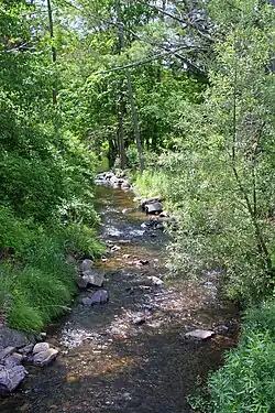 Watering Run looking upstream in its middle reaches  | |