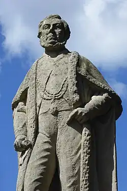 Palmerston Park is named after Lord Palmerston, Prime Minister of the UK in the 19th century. Prior to the erection of the statue it was known as Fair Field.[22] There is a 7 ft statue made of Carrara marble[23] dedicated to him, erected four years after his death in 1869.[22] The park also has a bandstand, which was replaced in 1999. The original bandstand from 1885 was removed in 1940 due to bomb damage, as a result of WW2.[24]