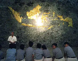 Since the mid-1980s, the concept of wawasan nusantara has been included in the Indonesian education curriculum and taught within geography education in high school. The subject of wawasan nusantara is also taught in kewiraan (civics and citizenship) education in universities to educate about citizenship, nationalism and Indonesian geopolitical standpoints.[3] In 2019, the Indonesian Geography Community (Komunitas Geografi) submitted a proposal to teach geography as early as elementary school, a wawasan nusantara concept with emphasis on disaster mitigation, management and response processes as part of national resilience; it would be in accordance with Indonesian geography and geology as an archipelagic nation located right on top of the Ring of Fire, which is prone to natural disasters.[4]