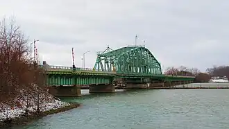 The Wayne County Bridge is a swing bridge that crosses the Trenton Channel in the Detroit River. Located in Wayne County, Michigan, it connects Grosse Ile Township to mainland Trenton and is one of two bridges connecting the island of Grosse Ile to the mainland — the other being the tolled Grosse Ile Toll Bridge to the north. Locally, it is also known as "The Free Bridge".