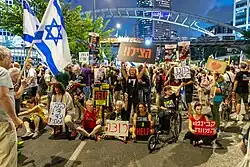 The group protests daily outside IDF headquarters (HaKirya) in Tel Aviv, and they are known for blocking Highway 20 (Ayalon) on multiple occasions.[5][6] They have called for an end to the Gaza war and a deal to return the hostages, arguing that Benjamin Netanyahu, the Israeli prime minister, is sabotaging negotations for a permanent ceasefire deal.[5][7][8]