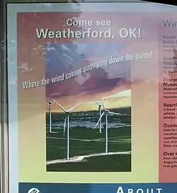 Weatherford is home to the wind power facility called the Weatherford Wind Energy Center, with 98 GE 1.5 MW Wind Turbines, for a total nameplate capacity of 147 MW.[28]