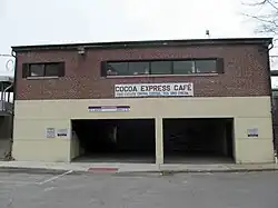 In the early 1950s, the B&M began planning a project to raise the tracks of the New Hampshire Main and the southern end of the Woburn Branch for a mile through Winchester, eliminating troublesome grade crossings downtown.[13] Construction began in 1955; boxy two-story brick stations opened at Wedgemere and Winchester Center in 1957.[4][14] The ticket office in the new station was closed in 1960 after just three years in service; thereafter, passengers bought tickets on the train. The station building hosted a coffee shop from 2008 to 2014.[14]