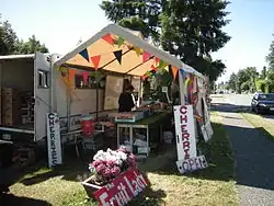 Half a mile (0.7 km) north, McVicar's Hardware Store (1946–1986)—in the space in the 8500 block of 35th Avenue NE opened shortly after World War II. The shortage of consumer goods right after the war meant that some of their early stock was manufactured on-site from war surplus. Adapting their business to whatever people in the neighborhood wanted to buy, as Wedgwood residents began putting in lawns and gardens, McVicar's sold them the requisite supplies; they sold specialty foods and rented out skis; they were also, for a decade, the only hardware store in the state licensed to sell beer and wine. They ran do-it-yourself clinics on everything from tools to gourmet cooking; in 1954, they were mentioned in a Time magazine article on the do-it-yourself trend.[29][30][31]