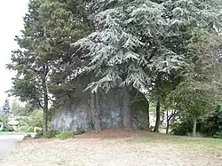 The area has been inhabited since the end of the last glacial period (c. 8,000 BCE—10,000 years ago). The Dkhw'Duw'Absh, "the People of the Inside", and the xachua'bsh or hah-choo-AHBSH, "People of a Large Lake" or "Lake People", today the Duwamish tribe, Native Americans of the Lushootseed (Skagit-Nisqually) Coast Salish hunted and traveled through what is now Wedgwood.[4] The Wedgwood Rock, a glacial erratic boulder 19 ft (5.8 m) tall by 75 ft (23 m) circumference became the intersection of a number of trails through dense, old growth forest that covered what is now Seattle. The neighborhood has adopted Big Rock after it was protected from housing development in 1941.[2]