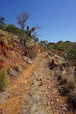The Wee MacGregor tram and rail complex and the former towns of Ballara and Hightville are located in the Argylla Ranges between Cloncurry and Mount Isa in North West Queensland, in the traditional country of the Kalkadoon people.[2] Constructed during an early 20th century boom in copper prices, the now-abandoned mining towns of Hightville and Ballara were surveyed in 1913 and 1914 respectively. The former western terminus (near Ballara) of a private 3-foot-6-inch (1.07 m) narrow gauge railway line was constructed 1913–14 and a private 2-foot (0.61 m) gauge tramway, was constructed 1914–15 between Ballara and the Wee MacGregor mine. The complex includes a 48-metre (157 ft) long ore transfer stage (c. 1914), and a 77-metre (253 ft) long tunnel (1914–15).[1]