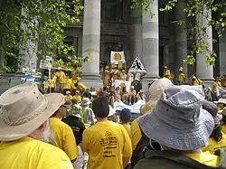 A rally by "Stop The Weir" protesters on the steps of Parliament House, Adelaide