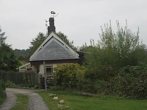 The station building was converted into a house by the artist Peter Blake and his then wife Jann Haworth, in the mid-1970s, during their Brotherhood of Ruralists period. The signalbox at the northern end of the down platform has also been converted for residential use. The station's canopy is still visible from nearby green space where the rail track ran south of the station. The house sports a weather vane with a steam engine finial.