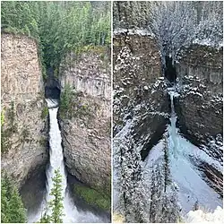 Wells Gray Park bears the nickname "Canada's Waterfalls Park" because 42 named waterfalls are found within its boundaries. There are actually many more if the numerous creeks that cascade down the mountainsides are included, but the following table lists the named waterfalls.[4]
