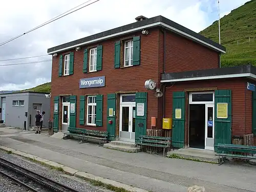 Wengernalp is a request stop railway station in the municipality of Lauterbrunnen in the Swiss canton of Bern. The station is on the Wengernalpbahn (WAB), whose trains operate from Lauterbrunnen to Kleine Scheidegg via Wengen. It takes its name from the alpine meadow of Wengernalp on which it is situated.[1][2]