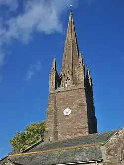 In 2017 the parish church was put on the Heritage at Risk Register compiled by Historic England, because the stonework of the tower and spire was rotting and there was no restoration proposal in place.[118]