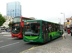 The services proved popular with staff and students at UWE, and passenger numbers in September 2008 were around 6,000 per day.[14] By September 2011, the network had been re-branded as Wessex Red and had grown from three routes requiring five buses in 2007 to eight routes requiring 26, with regular duplicate vehicles in operation particularly on route U4.[15]
