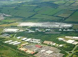 West Lothian has no airport or airfields in current operation.[60] The county has a few historic airfields, now defunct, including a temporary airfield that once existed in Bathgate.[61] While the village of Kirknewtown is inside West Lothian, the nearby RAF Kirknewton airfield lies inside the boundary of Edinburgh.[62] The nearest airport in operation to West Lothian is Edinburgh Airport.