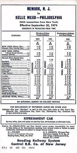 - ^ "New Rail Schedules Set". The Philadelphia Inquirer. Philadelphia, Pennsylvania. October 2, 1992. p. 36. Retrieved October 19, 2017 – via Newspapers.com.