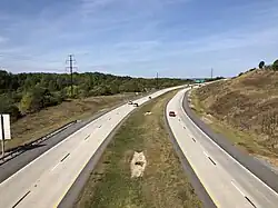 The stretch from the Virginia line to Charles Town was the most recent stage of construction. A pair of new bridges span U.S. Route 340 (US 340) south of Charles Town. The bypass carries WV 9 away from its previous winding route across the Shenandoah River and the Blue Ridge. Instead, it follows a straight path near Cattail Run Road, connecting with Virginia Route 9 at Keyes Gap.