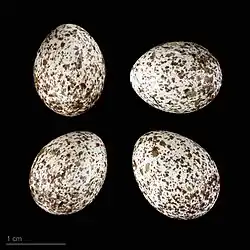 Western Bonelli's warbler is a small passerine bird, found in forest and woodland. Four to six eggs are laid in a nest on the ground. The eggs are white with reddish-brown markings and are laid in clutches of 3-5 eggs. The incubation period is around 14 days long, and the chicks fledge after 10-14 days.[7] Cuckoo nest predation and brood parasitism are major hazards to the breeding success of western Bonelli's warblers.[8] Like most warblers, western Bonelli's warbler is insectivorous.