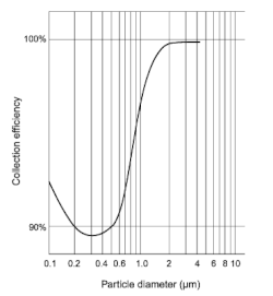 In the particle size range of approximately 0.1 to 1.0 μm, neither of these two collection mechanisms (impaction or diffusion) dominates. This relationship is illustrated in Figure 3.