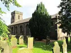 The Anglican Church of St John the Baptist was built in 1833–34; the architect was James Trubshaw. It was built of locally quarried stone and has a slate roof; it has a west tower with a crenellated parapet. In 1901 the chancel was extended by J. Beardmore, making room for choir stalls. The church is a Grade II listed building.[4][5]