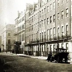 The area of Marylebone in which Weymouth Street is located originally belonged to the Manor of Tyburn which existed at the time of the Domesday Book (1086).[2] Weymouth Street was first laid out and built up in the late 1770s and early 1780s in line with the development of Harley Street, Portland Place and Great Portland Street.[3] Approximately a century later, the street was partially rebuilt and modernised mainly with neoclassical architecture. At the beginning of the 1900s, following lease expiries, large mansion blocks were developed near the main intersections of the street.[4] During the London Blitz of 1940–41, the street was struck twice by high explosive bombs.[5] Some of the original 18th century buildings survive to this day, for example at 45-49 Weymouth Street.