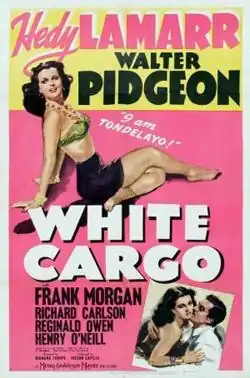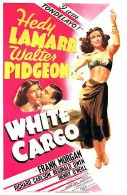 White Cargo is a 1942 American drama film starring Hedy Lamarr and Walter Pidgeon, and directed by Richard Thorpe. Released by Metro-Goldwyn-Mayer, it is based on the 1923 London and Broadway hit play by Leon Gordon, which was in turn adapted from the 1912 novel Hell's Playground by Ida Vera Simonton. The play had already been made into a British part-talkie, also titled White Cargo, with Maurice Evans in 1930. The 1942 film, unlike the play, begins in what was then the present-day, before unfolding in flashback.