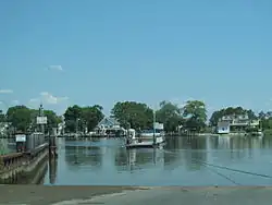 The Whitehaven Ferry is a passenger and automobile cable ferry that crosses the Wicomico River in Whitehaven, Maryland, located to the southwest of Salisbury. The ferry is operated by the Wicomico County Department of Public Works and runs between the community of Whitehaven in Wicomico County to the north and Somerset County in the south.[1][2] The ferry can carry a maximum of 6 passengers and 3 cars and has a weight limit of 10,000 pounds.[1][3] The Whitehaven Ferry operates from early morning until the evening every day of the year except Christmas and is free.[1] A ferry has crossed the Wicomico River in the area since 1687.[4] In 2012, the ferry was overhauled and refurbished.[1]