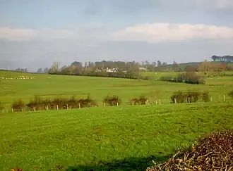 Blaeu's Atlas of Scotland, 1654 shows a 'Hilhos Loch' lying between Hilhous (Hillhouse) and Whythil (Whitehill) in the baillary of Kyle, with a single outflow running into the Little Sorn Burn near Little Sorn. The estate policies of Cessnock and Carnell are shown to the west of the roughly circular loch.[1] In 1857 the dwelling at Lochhouse is shown with a major ditch running down from the site of the loch and the stump of the original outflow and confluence with the Little Sorn Burn.[2] The 1895 6" OS map shows a Lochhouse, abandoned by 1910 and now demolished, on the course of a major drain running down from the site of the loch down towards the Little Sorn Burn. A track ran up to Hillhouse Farm from the dwelling at Lochhouse.[3] The satellite image of ploughed fields shows anaerobic soil markings typical of loch beds, etc.