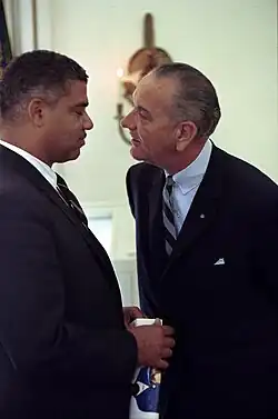 Despite their close personal relationship, Young was frustrated by Johnson's attempts to use him to balance Martin Luther King's opposition to the increasingly unpopular Vietnam War.[25] Young publicly supported Johnson's war policy, but came to oppose the war after the end of Johnson's presidency.
