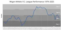 Wigan Athletic Football Club is a professional association football club based in Wigan, Greater Manchester, England. The team competes in the EFL League One, the third level of the English football league system.