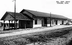 The Wiggins Depot was constructed in Wiggins, Mississippi in 1910 by the Gulf and Ship Island Railroad (G&SIRR) to serve as a replacement for the company's original depot that was destroyed by fire in January of the same year.[4] In the later half of the 20th century, the depot was being used only for storage and had fallen into disrepair. In 1999, the depot was acquired by the City of Wiggins and was designated a Mississippi Landmark. During the first decade of the 21st century, the depot was relocated within the city and was renovated for use as office space.