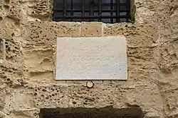 (Translation: This tower, built by Grand Master Alof de Wignacourt in the year 1610, was restored by the National Trust Din l-Art Ħelwa in the year 1975 to commemorate the European Architectural Heritage Year.)