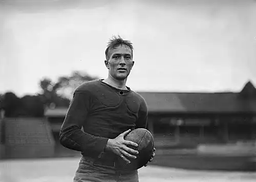 Born in Spokane, Washington, on January 26, 1891,[4][5] Penfield spent most of his early life in Hudson, Wisconsin.[1][3] He studied at Princeton University, where he was a member of Cap and Gown Club[6] and played on the football team. After graduation in 1913, he was hired briefly as the team coach. In 1915 he obtained a Rhodes Scholarship to Merton College, Oxford,[7] where he studied neuropathology under Sir Charles Scott Sherrington.[8] After one term at Merton, Penfield went to France where he served as a dresser in a military hospital in the suburbs of Paris.[7] He was wounded in 1916 when the ferry he was aboard, the SS Sussex, was torpedoed.[7] The following year, he married Helen Kermott, and began studying at the Johns Hopkins School of Medicine, attaining his medical degree in 1918; this was followed by a short period as a house surgeon at the Peter Bent Brigham Hospital in Boston.[7] Returning to Merton College in 1919,[7] Penfield spent the next two years completing his studies; during this time he met Sir William Osler. In 1924, he worked for five months with Pío del Río Hortega characterising the type of glial cells known as oligodendroglia.[9] He also studied in Germany with Fedor Krause and Otfrid Foerster, as well as in New York City.[10][11][12] In 1928, during the 6 months he spent in Germany with Foerster, he learned how to use local anesthesia to keep brain surgery patients awake.[13][14][15]