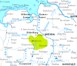 The Wildeshausen Geest (German: Wildeshauser Geest) is part of the northwest Germany's geest ridge, that begins near Meppen on the river Ems with the Hümmling, is broken by the Weser depression, continues with the Osterholz Geest and reaches the marshes of Kehdingen by the river Elbe with the ridges of the Wingst and Stade Geest. It gives its name to the eponymous nature park.