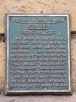 Gibson was one of the founders of the Dymock poets, a group of writers who lived in and around the village of Dymock, on the Gloucestershire/Herefordshire border, in the years immediately before the outbreak of the First World War.[6]