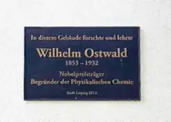 The Wilhelm Ostwald Institute for Physical and Theoretical Chemistry at the University of Leipzig, located at Linnéstraße 2 in Leipzig, is the oldest physical chemistry institute in Germany. It is one of seven institutes of the Faculty of Chemistry and Mineralogy of the University of Leipzig. The institute was ceremoniously inaugurated in 1898 by its first director, Nobel Prize winner Wilhelm Ostwald, and has borne the official name "Wilhelm Ostwald Institute for Physical and Theoretical Chemistry" since 1998.[1]