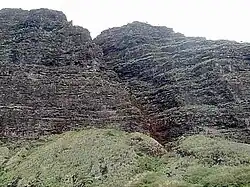 Wilkesia hobdyi inhabits dry, nearly vertical rock outcroppings in the western part of the island at elevations of 275–400 m (902–1,312 ft).[5] Rainfall in these sites is less than 1,200 ml per year.[3]