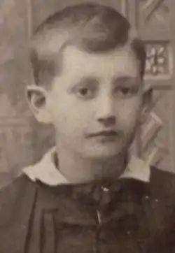 William Harrison Hays Sr. was born November 5, 1879, in Sullivan, Indiana, to Presbyterians[3] John Tennyson and Mary (née Cain) Hays.[4] The family's origins lay within various regions of the British Isles, one of which was Isle of Man, from which his maternal side had came. He recounted his home as having been "religious"—although "in no sense puritanical or severe"—providing "spiritual 'air conditioning' in which it was a joy to live." He was close to his maternal grandparents, William Henry and Nancy Duncan, whose lives extended to his years in college.[5]