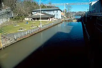 The Willamette Falls Locks are a lock system on the Willamette River in the U.S. state of Oregon. Opened in 1873 and closed since 2011, they allowed boat traffic on the Willamette to navigate beyond Willamette Falls and the T.W. Sullivan Dam. Since their closure in 2011, the locks have been classified to be in a "non-operational status." In 2023, work began to repair the locks, which are expected to reopen in 2026.[1]