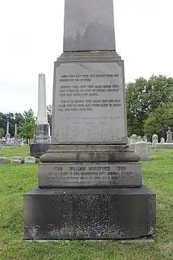 He died while in office as Attorney General in 1795. He was buried with his wife's family in Saint Mary's Episcopal Churchyard in Burlington, New Jersey.[5] A cenotaph for Bradford was built at his family's burial plot in Laurel Hill Cemetery in Philadelphia.