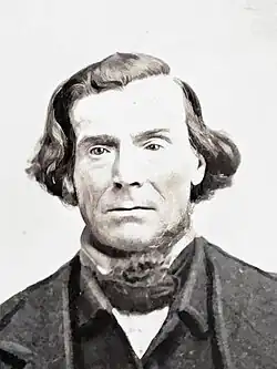 After recovering, he along with other saints, were instructed to head for Caldwell County,[8] and were warned that there might be trouble. At this time people were opposed to any more saints gathering in Far West, even making it unsafe to travel the main roads. William settled near Far West and bought a log house, blacksmith shop and seven acres of good land. He set to work at shoemaking and made his family comfortable again. It was around this time that William was ordained a high priest by Don Carlos Smith.[1] However, hostilities increased daily in the adjoining counties and finally by the middle of October hostilities ran so high they received another message from the prophet requesting everyone to go into Far West. Many tore down their log houses and moved to the city, however William did not do this and instead just moved into an old log cabin with three other families. As hostilities grew worse, the Missouri State Militia took several Latter-day Saint men captive and held them in the militia's camp on the Crooked River. A company of Latter-Day Saint militia came to rescue them, and a fierce battle was fought on October 25, 1838.[9] This battle led to Governor Lilburn W. Boggs issue of the infamous "extermination order" on October 27, 1838, declaring, "The Mormons must be treated as enemies, and must be exterminated or driven from the State if necessary, for the public peace." On March 17, 1839, William and his family left Missouri and headed west, with no destination and decided to settle in Pike County, Illinois.[10] In 1842 when hostilities arose again for the Mormons, William and his family were ordered to leave for Hancock County and settled there in 1843.[8] Joseph Smith, the founder and leader of the Latter Day Saint movement, and his brother Hyrum Smith were killed by a mob in Carthage, Illinois, on June 27, 1844. William describes how the violence escalated in June 1844 in his autobiography which he wrote in December 1881.