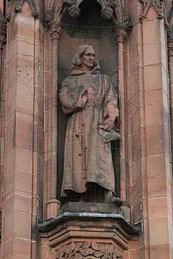 Dunbar was an ordained priest of the Roman Catholic Church in Scotland and several of his works have religious subject matter. Rorate Celi Desuper, Of the Passioun of Christ and Done is a Battell on the Dragon Blak deal with the Nativity, Passion and Resurrection respectively. Ane Ballat of Our Lady is a hymn in praise of the Blessed Virgin. The Table of Confession discusses sin and confession.[2][8]