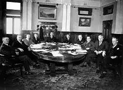 Forgan Smith read heavily on Parliamentary procedure; his knowledge meant he was made a temporary Chairman of Committees in 1917, a position which became permanent in 1920. Soon after, he entered Cabinet as a Minister without portfolio assisting the Premier. Both roles gave him ample opportunity to build a profile in Parliament and the party. In 1922 he became Minister for Public Works, where he administered a new system of unemployment relief and earned the respect of the Unions. In 1923 he was elected to the Queensland Central Executive of the Labor Party, a position which gave him considerable power. In 1925 he became Minister for Agriculture and Stock under Premier Gillies. By the end of 1925 he was Deputy Premier after only ten years in Parliament.[3]