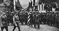 All four division infantry regiments, the three artillery regiments, and the division's three machine gun battalions were awarded the Croix de Guerre by the Republic of France. The flag and standard of every unit in the division was authorized four American battle streamers.[12]