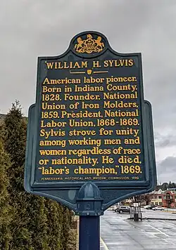 - ^ a b c "William H. Sylvis Historical Marker," Explore PA History, explorepahistory.com/