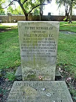 William Jones VC (1839 – 15 April 1913) was a British recipient of the Victoria Cross for his action at the Battle of Rorke's Drift in January 1879, the highest and most prestigious award for gallantry in the face of the enemy that can be awarded to British and Commonwealth forces.