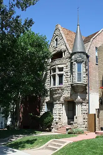 - Caroline Bancroft House, 1079-81 Downing St. and 1180 E. 11th, Denver, (NRHP-listed, credit to Lang, William A.[5])