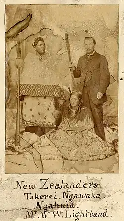 In 1863 and 1864, Lightband was accompanying a party of entrepreneurs who travelled to England with a number of Māori chiefs and some of their families. One of his roles was to act as interpreter. They had an audience with Queen Victoria.[12][13]