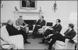 In spite of his many successes and accomplishments as governor, Cahill's term was derailed by scandal. In 1972, Secretary of State Paul J. Sherwin was convicted for fixing a $600,000 state highway contract with a contractor who returned the favor with $10,000 to Cahill's associates. Then, in April 1973, former New Jersey Republican State Committee chairman Nelson G. Gross and State Treasurer Joseph McCrane, who had been finance chairman for Cahill's 1969 campaign, were both charged with illegally making campaign donations to the governor as tax deductions. Both men were convicted the following year. Although investigators were unable to implicate Cahill in either affair, his reputation suffered as a result of these setbacks.[1]