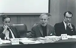 Fox (center) at a 1969 conference for the United States Arms Control and Disarmament Agency to discuss American defense postures and European security. On the left is colleague and former student Warner R. Schilling; on the right, Wilfrid L. Kohl.